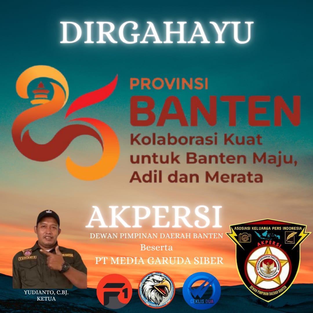 Banten, Ceklisdua.net – Dewan Pimpinan Daerah Asosiasi Keluarga Pers Indonesia (AKPERSI) Provinsi Banten bersama PT Media Garuda Siber turut menyampaikan ucapan selamat Dirgahayu ke-25 untuk Provinsi Banten.