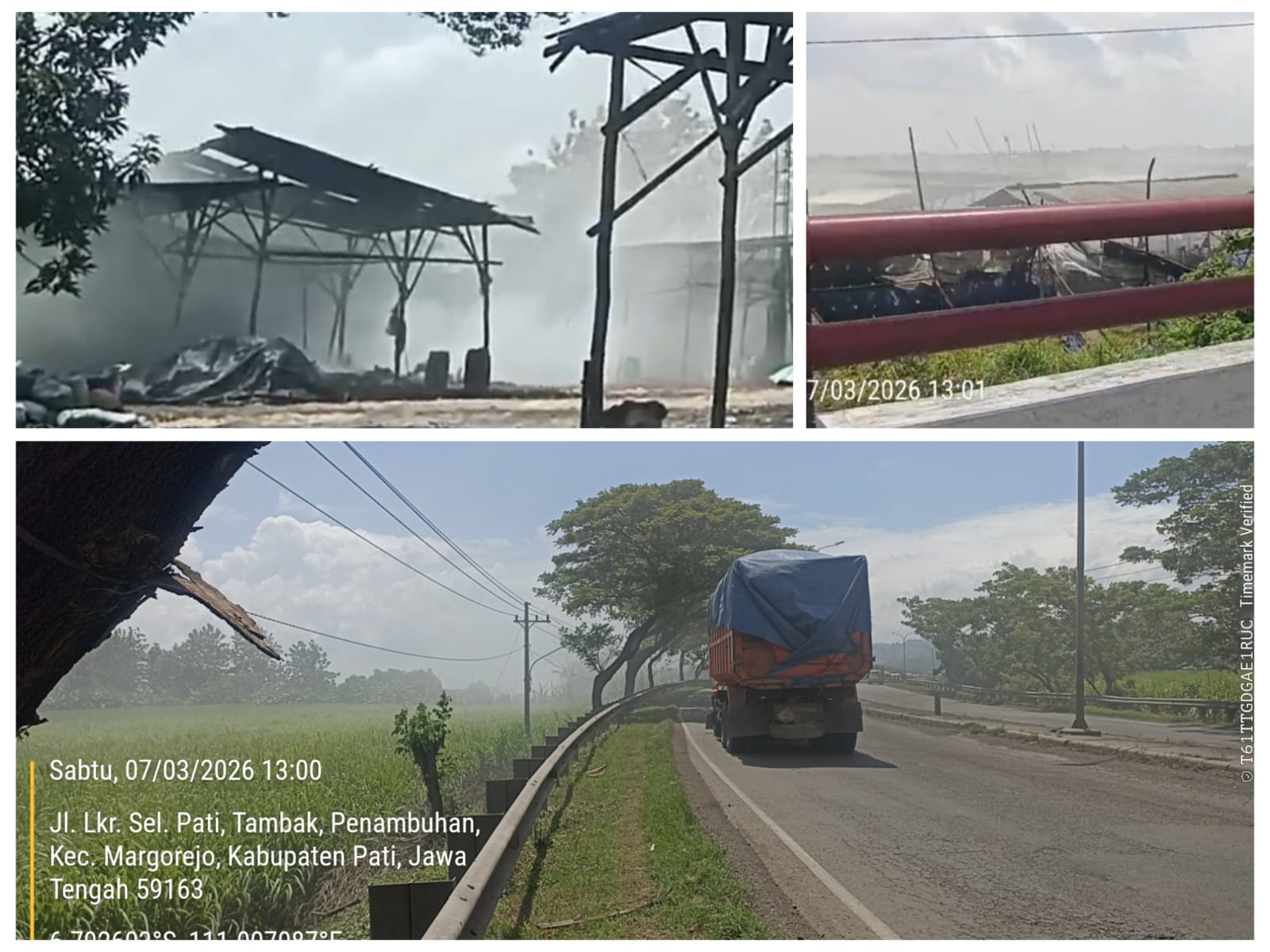 Pati, CeklisDua.net – Warga pengguna Jalan Raya Lingkar Selatan Pati, Kecamatan Margorejo, Kabupaten Pati, Jawa Tengah, mengeluhkan asap tebal yang sering menutupi jarak pandang pengendara. Asap diduga berasal dari limbah pembakaran pabrik arang yang berlokasi di pinggir jalan raya lingkar selatan, turut Desa Ngawen, kecamatan Margorejo, Pati. Asap tebal limbah pembakaran arang tersebut berpotensi mengancam keselamatan lalu lintas sekaligus mencemari udara sekitar.