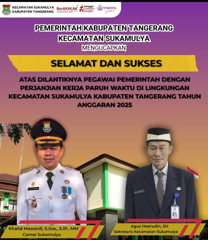 Tangerang, Ceklisdua.net – Camat Sukamulya, Khalid Mawardi, S.Sos., S.IP., MM., menyampaikan ucapan selamat sekaligus apresiasi atas pengangkatan Pegawai Pemerintah dengan Perjanjian Kerja (PPPK) paruh waktu di lingkungan Kecamatan Sukamulya, Jumat (28/11/2025).