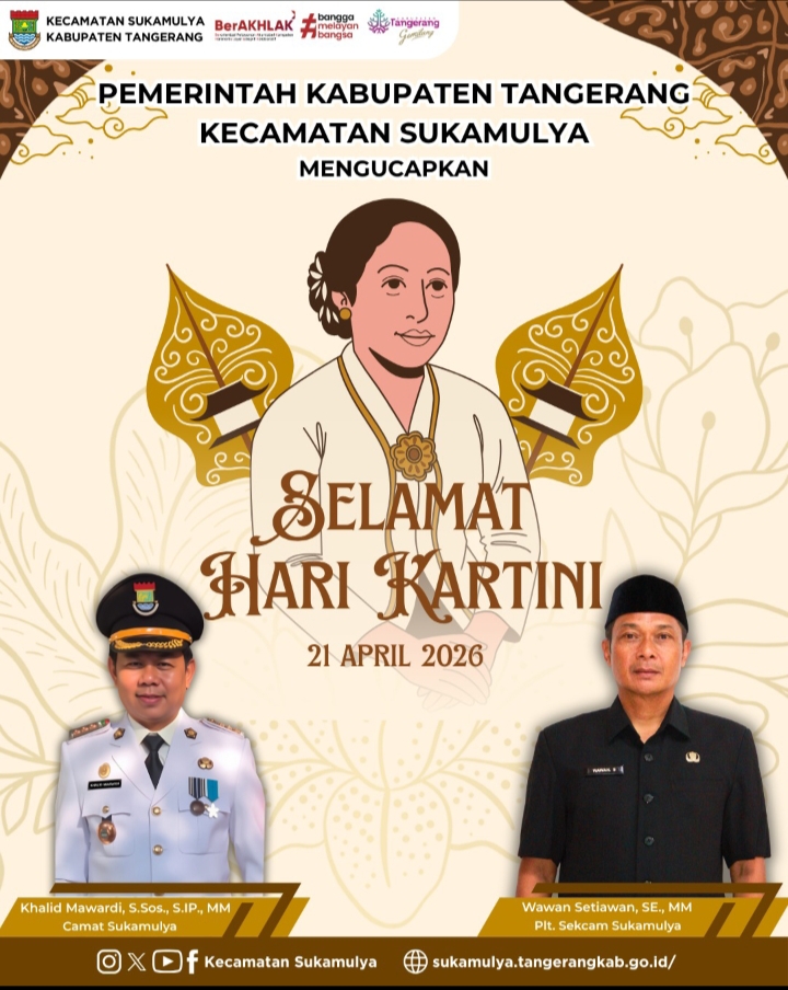 Kabupaten Tangerang, Ceklisdua.net – Memperingati hari Kartini yang jatuh pada 21 April, Camat Sukamulya, Kabupaten Tangerang, Khalid Mawardi, S.Sos., S.SIP., MM., menyampaikan ucapan selamat kepada seluruh perempuan, khususnya yang berada di wilayah Kecamatan Sukamulya, selasa 21/4/2026.