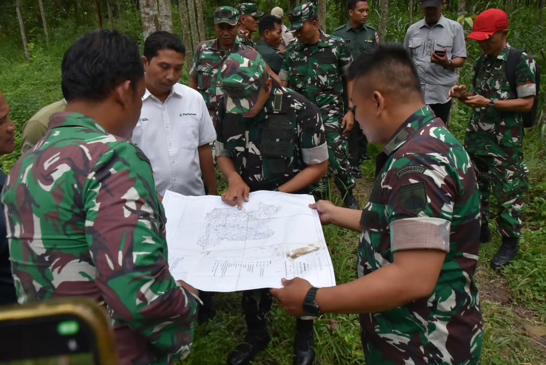 Kegiatan dilanjutkan dengan pengecekan batas lahan menggunakan peta yang disesuaikan dengan kondisi lapangan bersama staf Perhutani, inspeksi lahan Brigif TP, pengambilan gambar udara via drone, serta koordinasi intensif dengan staf Perhutani Gundi dan tokoh masyarakat setempat.