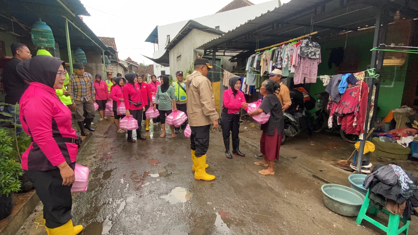 Masih di hari yang sama, Polresta Pati juga melaksanakan penyaluran bantuan di wilayah Kecamatan Juwana. Kegiatan tersebut dipimpin Kabag Log Polresta Pati Kompol Catur Kusuma Adhi dan didampingi Kapolsek Juwana AKP Mudofar bersama anggota Polwan, Bhayangkari, serta personel Polsek Juwana.