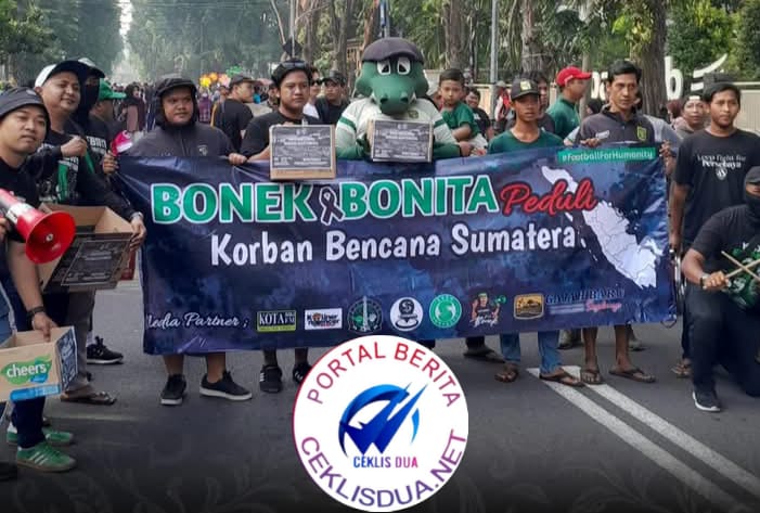 Surabaya, Ceklisdua.net – Suasana CFD Taman Bungkul pada minggu pagi (7/12/2025) berubah menjadi lautan hijau ketika ratusan Bonek dan Bonita berkumpul untuk menggelar aksi Peduli Bencana Alam Sumatra. Kegiatan solidaritas ini berlangsung tertib, penuh semangat kemanusiaan, dan mendapat respons positif dari warga yang melintas.