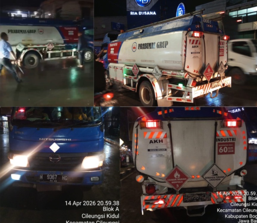 Bogor, Ceklisdua.net – Diduga mobil transportir milik PT Prabumas Group membawa BBM jenis Solar ilegal saat melintas di Jl. Raya Narogong, Dayeuh, Kecamatan Cileungsi, Kabupaten Bogor, Jawa Barat. Selasa (14/04/2026).