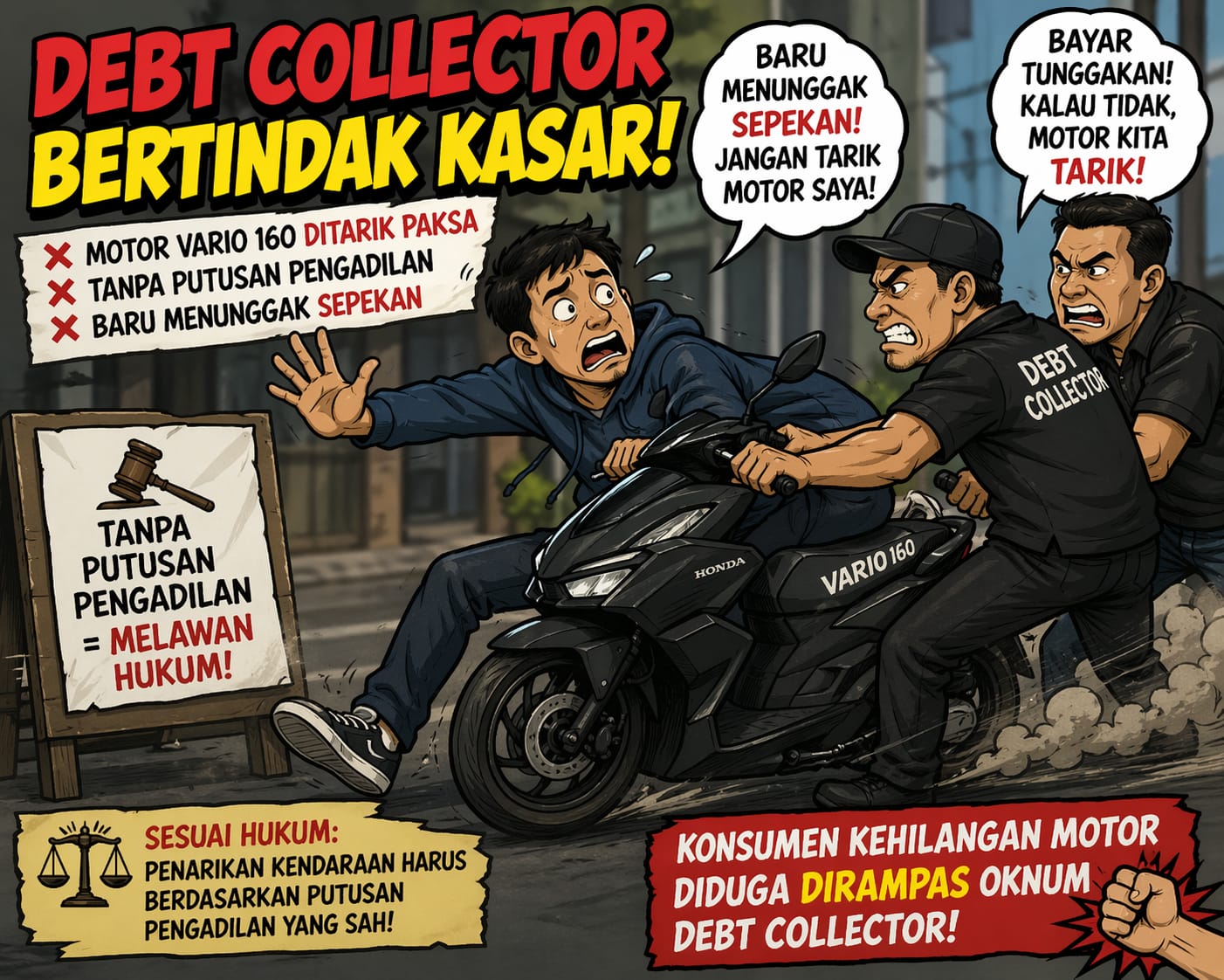 Langkah tersebut merupakan tindak lanjut dari laporan nasabah atas nama Pajri Hidayatullah. Ia mengaku sepeda motor miliknya, Honda Vario ABS dengan nomor kontrak 467918132, telah ditarik oleh oknum debt collector berinisial Jevi dan Ika yang mengaku berasal dari pihak perusahaan pembiayaan.