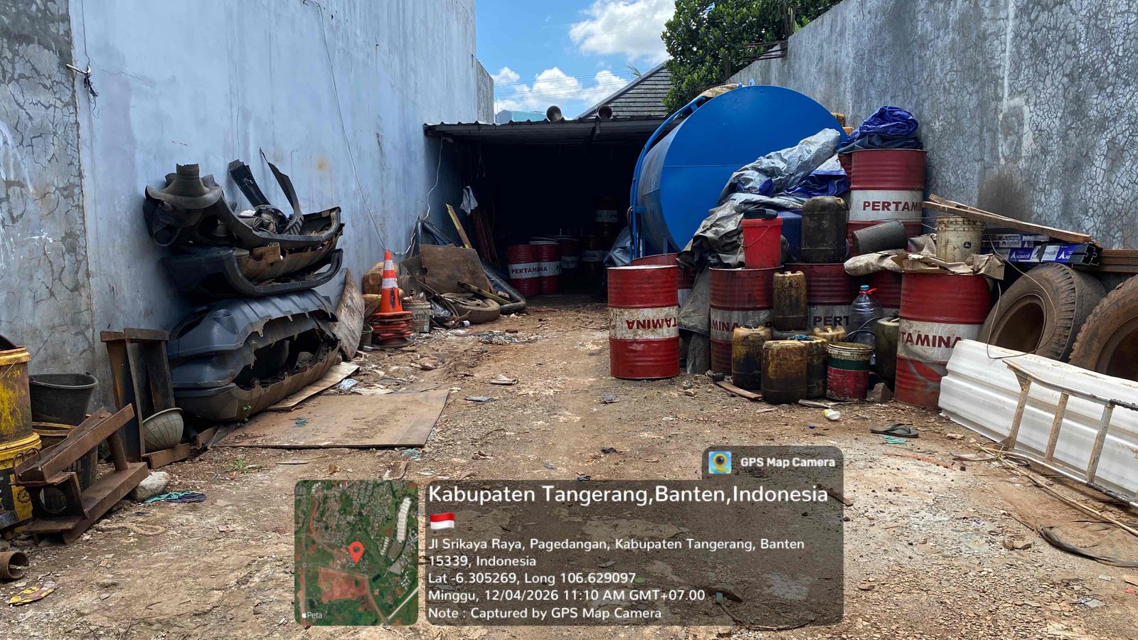 Berdasarkan hasil pantauan di lokasi pada Minggu (12/04/2026) sekitar pukul 11.00 WIB, tepatnya di Jalan Srikaya Raya, terlihat sejumlah aktivitas mencurigakan di dalam area gudang. Beberapa drum bertuliskan BBM, tangki penampungan berukuran besar, serta jerigen yang diduga berisi solar tampak tersusun di area tersebut.