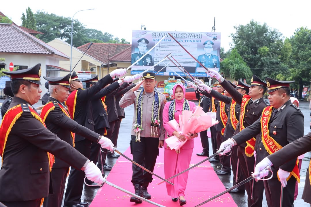 Kapolres baru, AKBP Hadi Kristanto, tiba bersama Ketua Bhayangkari dan disambut hangat oleh Wakapolres Jepara, Kompol Edy Sutrisno, beserta ibu. Mereka mendapat kalungan bunga sebagai tanda penghormatan. Saat memasuki gerbang Mako Polres Jepara, rombongan melewati formasi Pedang Pora yang spektakuler: deretan personel berbaris memanjang membentuk gapura pedang yang dihunus di atas kepala.