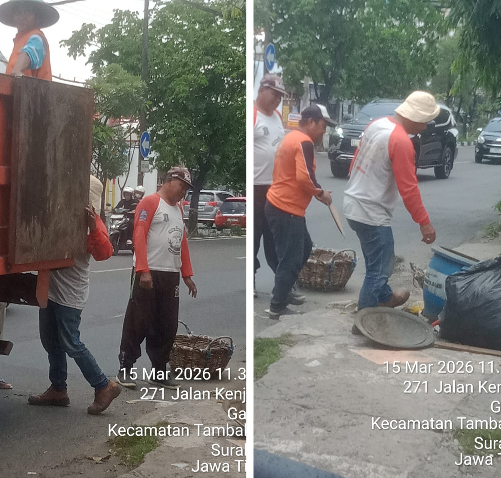 Selain menyisir tepi jalan, petugas dari Dinas Lingkungan Hidup Kota Surabaya juga membersihkan area sekitar tempat penampungan sementara (TPS), pasar, serta fasilitas umum lainnya. Sampah yang terkumpul kemudian diangkut menggunakan truk menuju tempat pengolahan akhir.
