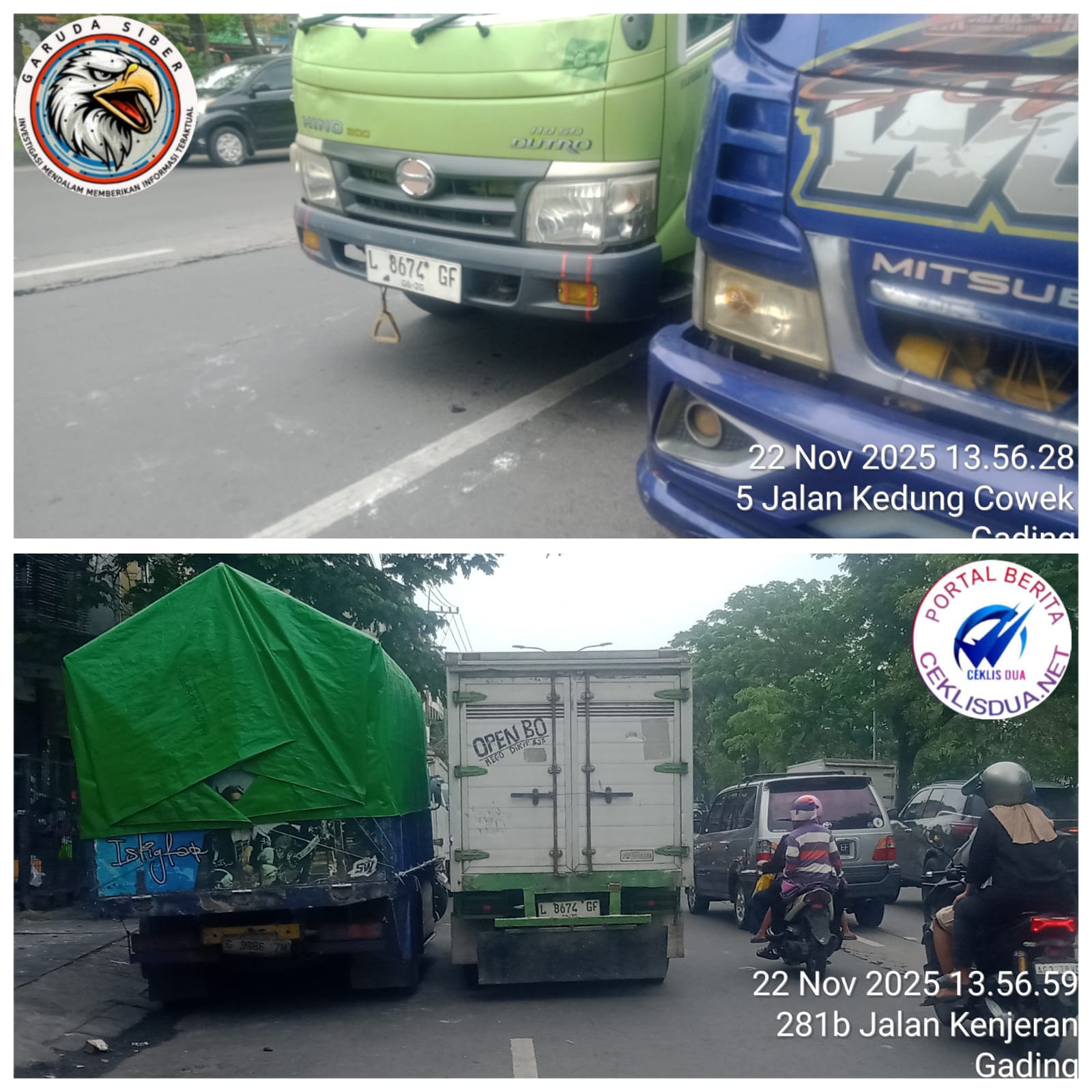 Surabaya, Ceklisdua.net – Dua Aktivitas warga di kawasan jalur lambat Kedung Cowek, Kecamatan Tambaksari, terganggu akibat dua unit truk Hino yang diduga parkir tidak pada tempatnya. Kedua truk tersebut tampak berhenti di depan CV Jaya Abadi Sembako dengan posisi memakan hampir separuh badan jalan, sehingga menimbulkan hambatan lalu lintas dan meningkatkan risiko kecelakaan bagi pengendara yang melintas.