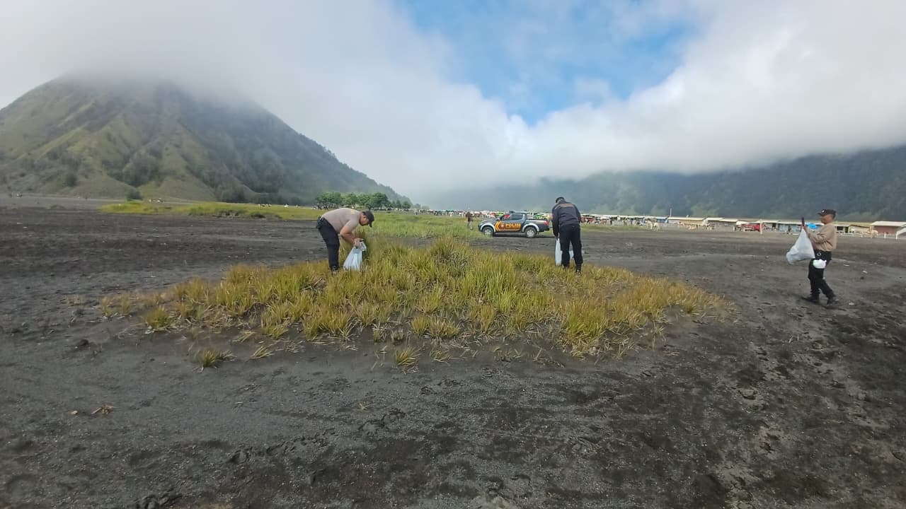 Gerakan Indonesia Asri, Polres Probolinggo Bersih – bersih Lokasi Wisata Bromo