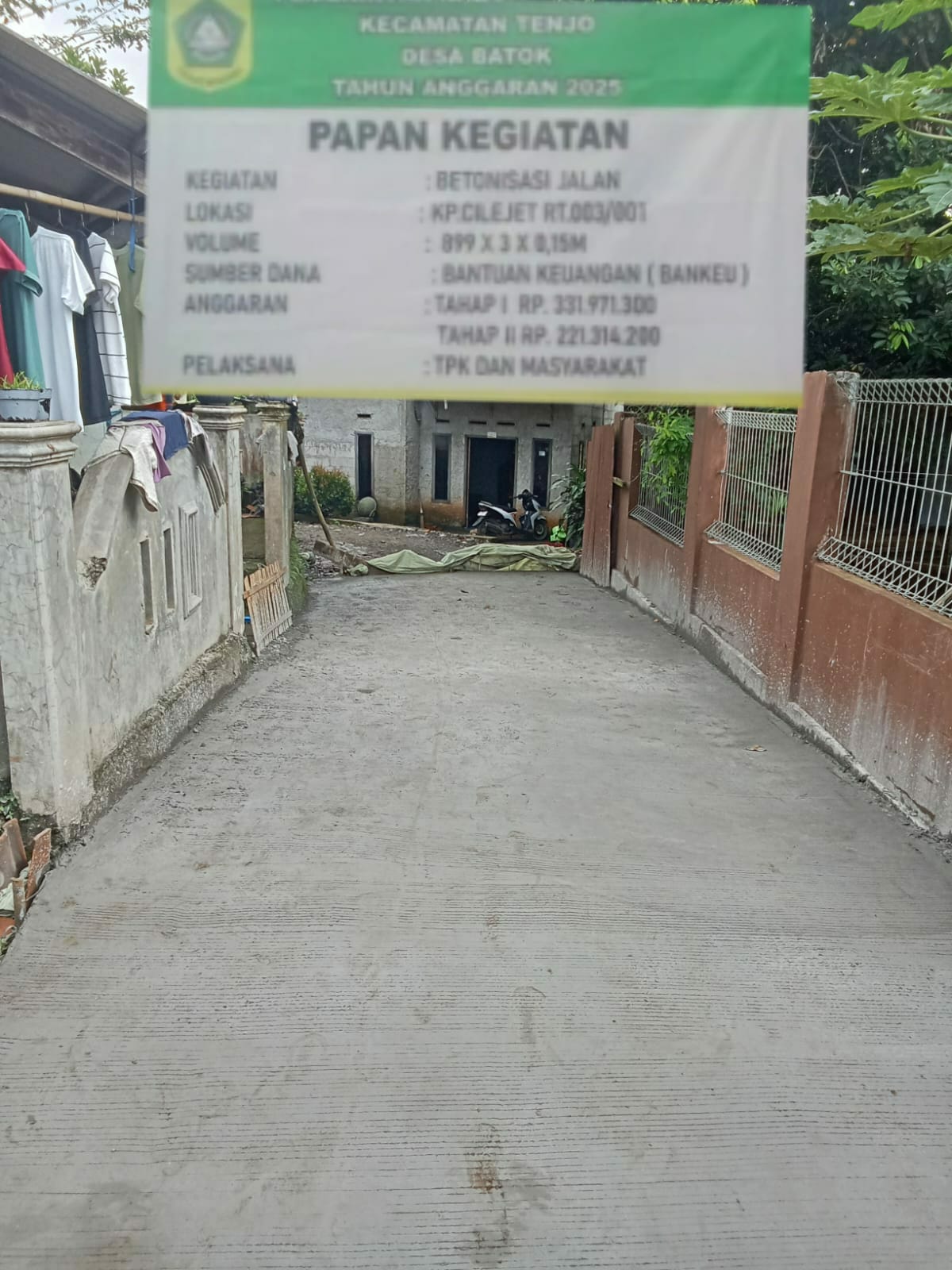 Desa Batok Kabupaten Bogor, Ceklisdua.net – Pembangunan infrastruktur jalan desa di Kampung Cilejet, Desa Batok, Kecamatan Tenjo, Kabupaten Bogor, Provinsi Jawa Barat, telah selesai dilaksanakan pada tahun 2025. Pembangunan ini merupakan contoh kerja nyata Kepala Desa Batok, H. Ata Sudrajat, dalam membangun dan meningkatkan kesejahteraan masyarakat, Selasa (22/07/2025).