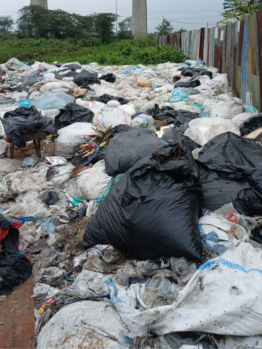 Temuan tersebut diperkuat dengan kondisi di lapangan yang memperlihatkan tumpukan karung berisi sampah dan limbah yang diduga berasal dari aktivitas pengolahan limbah.