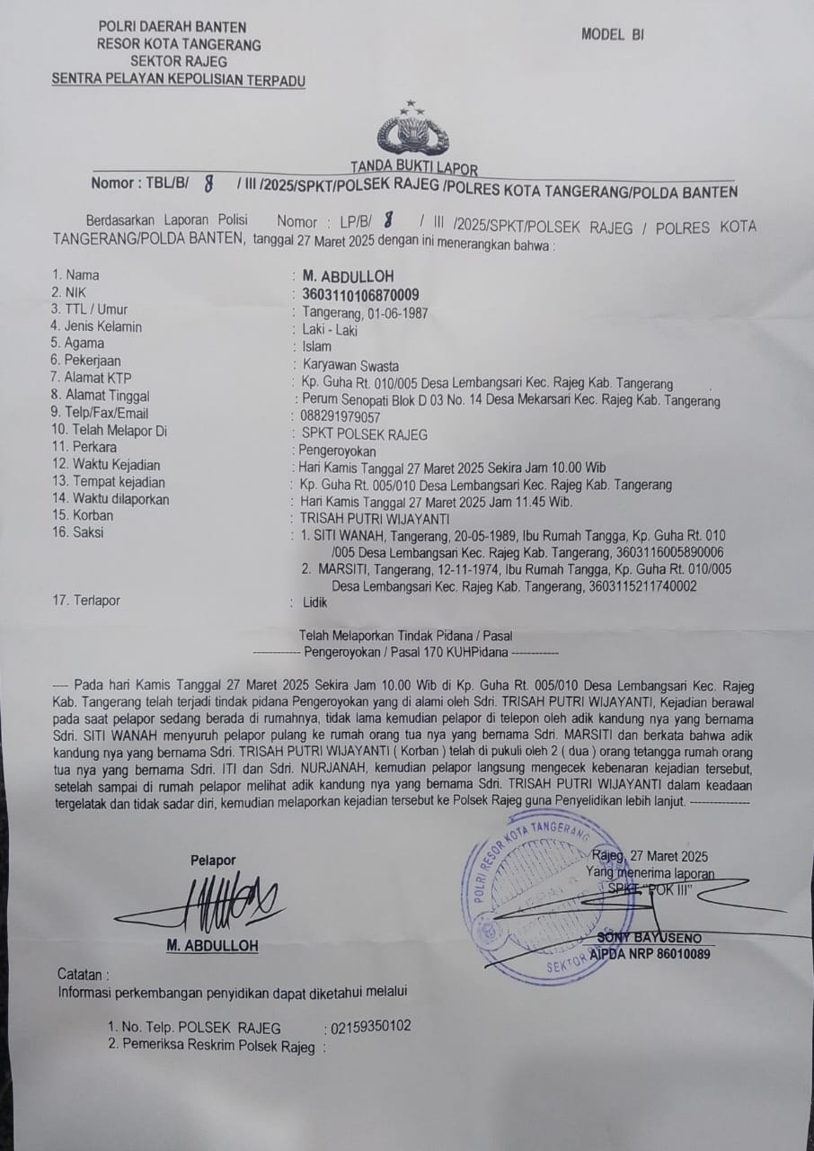 Kasus Pasal 170 KUHP di Polsek Rajeg Seperti Keong Sawah