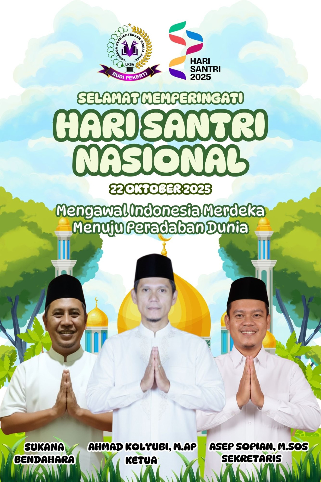 Tangerang, 22 Oktober 2025. Ceklisdua.net — Ketua Lembaga Kesejahteraan Sosial Anak (LKSA) Budi Pekerti, Ahmad Kolyubi, M.AP, menyerukan kepada generasi muda Indonesia untuk meneladani nilai-nilai luhur kesantrian sebagai semangat perjuangan dalam mengawal kemerdekaan Indonesia menuju peradaban dunia yang bermartabat.