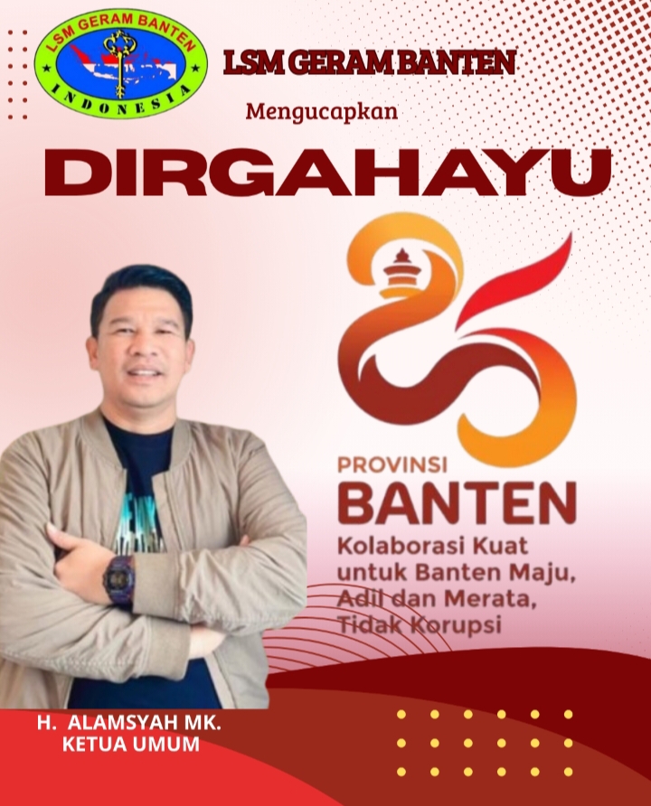 Tangerang, Ceklisdua.net – Ketua Umum LSM GERAM Banten Indonesia, H. Alamsyah, MK., menyampaikan ucapan selamat dan doa terbaik untuk Provinsi Banten yang memperingati hari jadinya ke-25 pada 4 Oktober 2025.