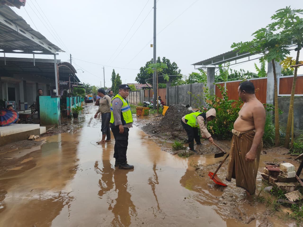 Luapan Sungai Silugonggo Terjang Tayu, Polsek Tayu Turun Tangan Pimpin Bersih-Bersih Pascabanjir