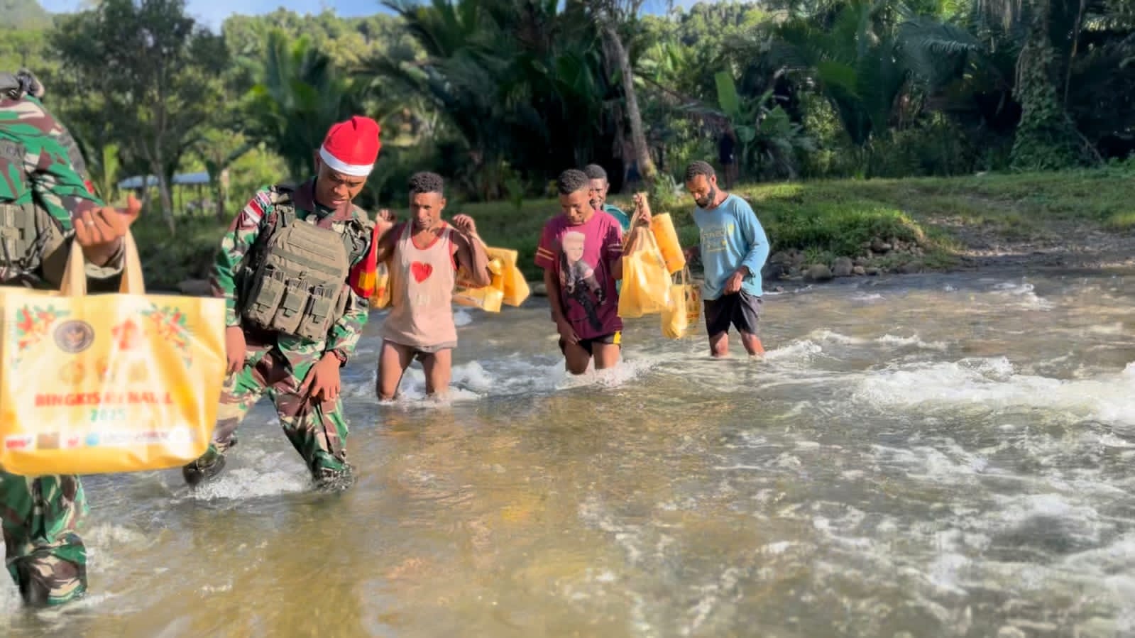 Papua, Ceklisdua.net — Meski dihadapkan pada cuaca yang kurang bersahabat serta medan dan akses jalan yang terbatas, semangat berbagi dan kebersamaan prajurit Yonif 121/Macan Kumbang tidak surut dalam memaknai Hari Raya Natal. Di tengah pelaksanaan tugas operasi pengamanan perbatasan, Yonif 121/MK tetap menggelar kegiatan Natal dengan penuh kreativitas dan inovasi sebagai wujud kepedulian serta pengabdian kepada masyarakat. 27/12/25