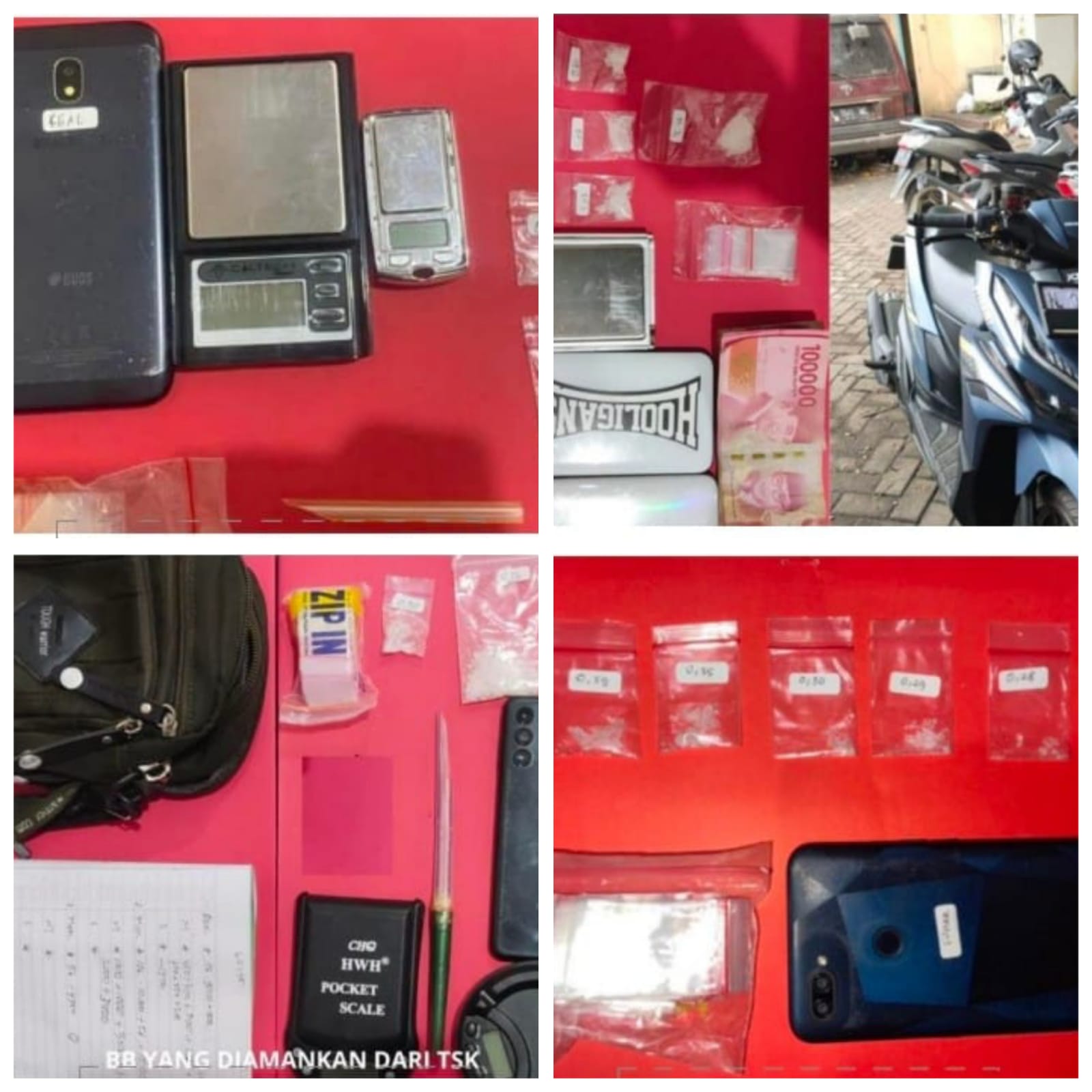 Selanjutnya, Selasa (10/2/2026) pukul 02.00 WIB, tersangka SHT (39) ditangkap di Desa Dayurejo, Kecamatan Prigen. Dari tangan pelaku diamankan lima kantong sabu dengan berat total 0,758 gram serta satu unit ponsel dan plastik klip kosong.