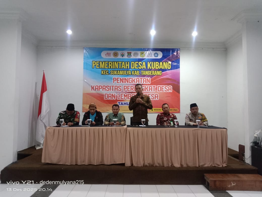 KABUPATEN TANGERANG | Ceklisdua.net — Pemerintah Desa Kubang, Kecamatan Sukamulya, Kabupaten Tangerang, menggelar kegiatan Peningkatan Kapasitas Perangkat Desa dan Lembaga Desa di Puri Anandita Resort, Cisarua–Puncak, pada Sabtu (13/12/2025). Kegiatan ini merupakan agenda rutin tahunan yang bertujuan meningkatkan kualitas sumber daya aparatur desa serta memperkuat peran lembaga desa dalam mendukung tata kelola pemerintahan dan pelayanan kepada masyarakat.