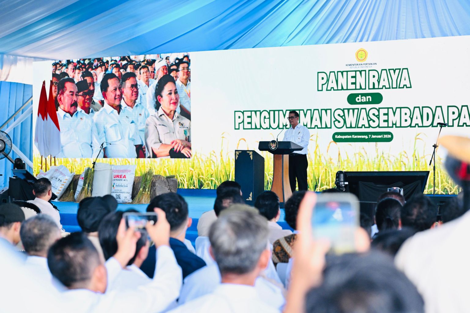 Presiden Prabowo Subianto dalam kesempatan tersebut menegaskan bahwa keberhasilan swasembada pangan merupakan hasil kerja kolektif lintas sektor, mulai dari petani, penyuluh, pemerintah daerah, hingga unsur TNI-Polri yang hadir langsung di lapangan menjaga stabilitas dan keberlanjutan produksi pangan nasional.