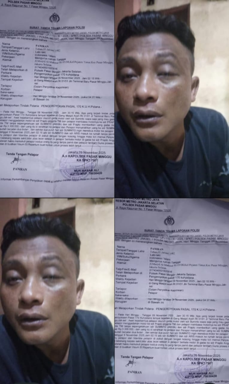 Jakarta, Ceklisdua.net – Sejumlah aktifis meminta Polsek Pasar Minggu untuk tegas dalam menindak pelaku pengeroyokan dan penganiayaan terhadap Pria yang bernama Paniran di Gang Masjid Aceh RT 01/01 Kecamatan Pasar Minggu pada 9 November 2025, Jam 02.15.