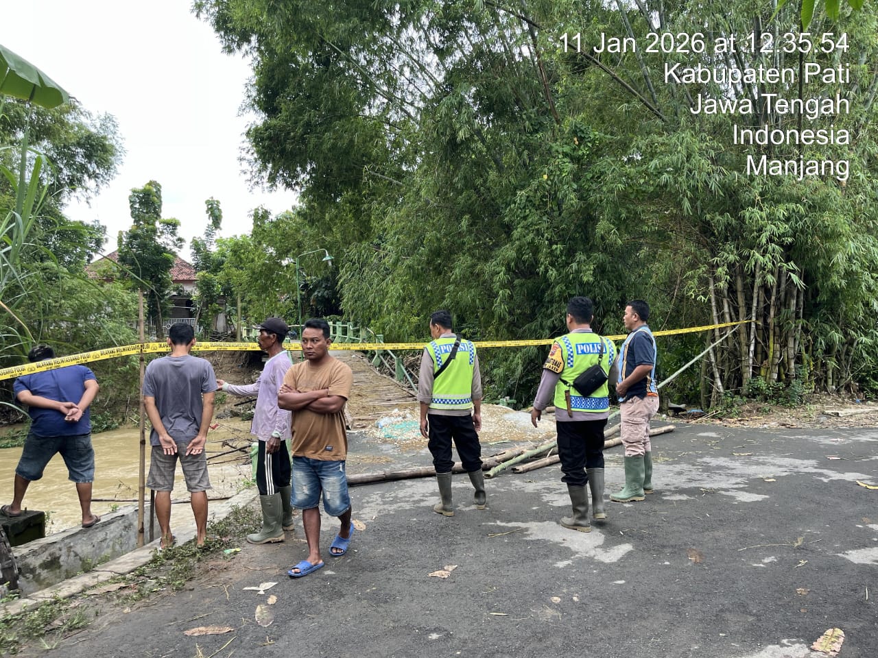 Kapolresta Pati melalui Kapolsek Jaken, AKP Warsono, menyampaikan bahwa pihaknya segera bergerak ke lokasi setelah menerima laporan dari masyarakat melalui Bhabinkamtibmas Desa Manjang. Pengecekan dilakukan untuk memastikan tingkat kerusakan, dampak yang ditimbulkan, serta langkah pengamanan awal bagi warga sekitar.