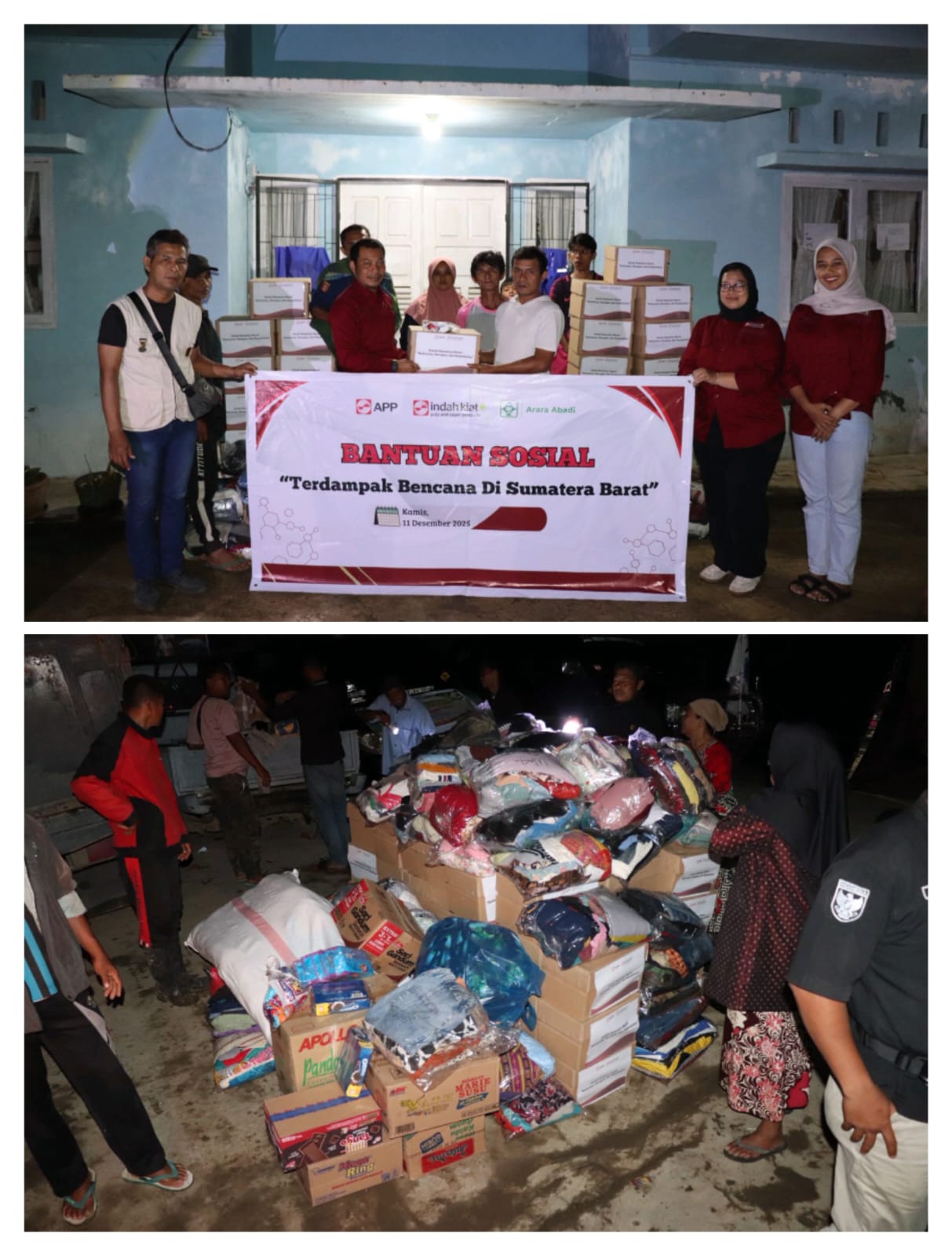 “Sebagai perusahaan yang berada di Provinsi Riau dan berdekatan dengan Provinsi Sumatera Barat dan Sumatera Utara Indonesia, manajemen dan seluruh karyawan perusahaan merasa terpanggil dan turut prihatin serta merasakan beban berat dan menghadapi kesulitan yang dihadapi masyarakat yang terdampak bencana,” tutur Direktur Arara Abadi, Edi Haris MZ.