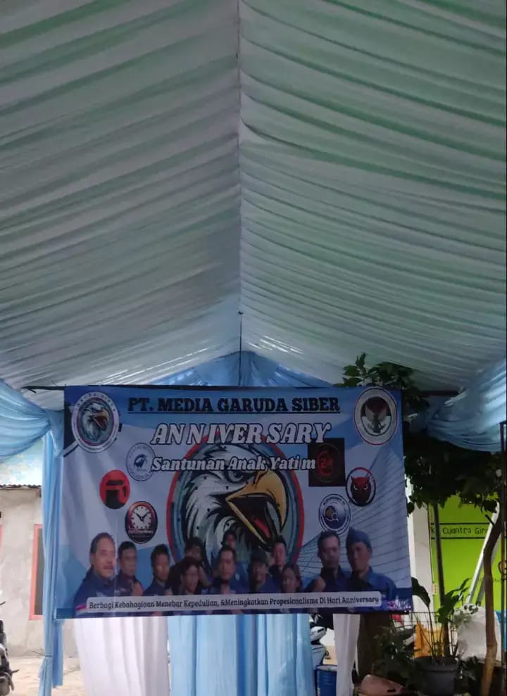 Tangerang, Ceklisdua.net – PT Garuda Siber menggelar kegiatan santunan anak yatim piatu sebagai bagian dari program kepedulian sosial perusahaan. Kegiatan tersebut berlangsung dengan tertib dan ditandai oleh terpasangnya terop acara yang membentang jelas menampilkan simbol PT Garuda Siber.net di lokasi kegiatan. (07/01/2026)