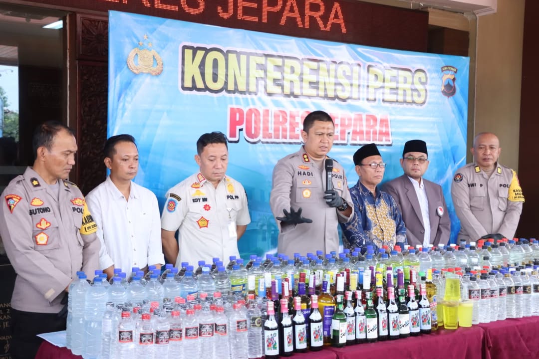 “Selama periode itu, Polres Jepara beserta Polsek jajaran berhasil mengamankan barang bukti, terutama minuman keras (miras) berbagai jenis dan merek dengan jumlah 2.707 botol dan 2.769 liter miras oplosan,” ungkap AKBP Hadi saat menggelar konferensi pers di Mapolres setempat, Jumat (13/2/2026).