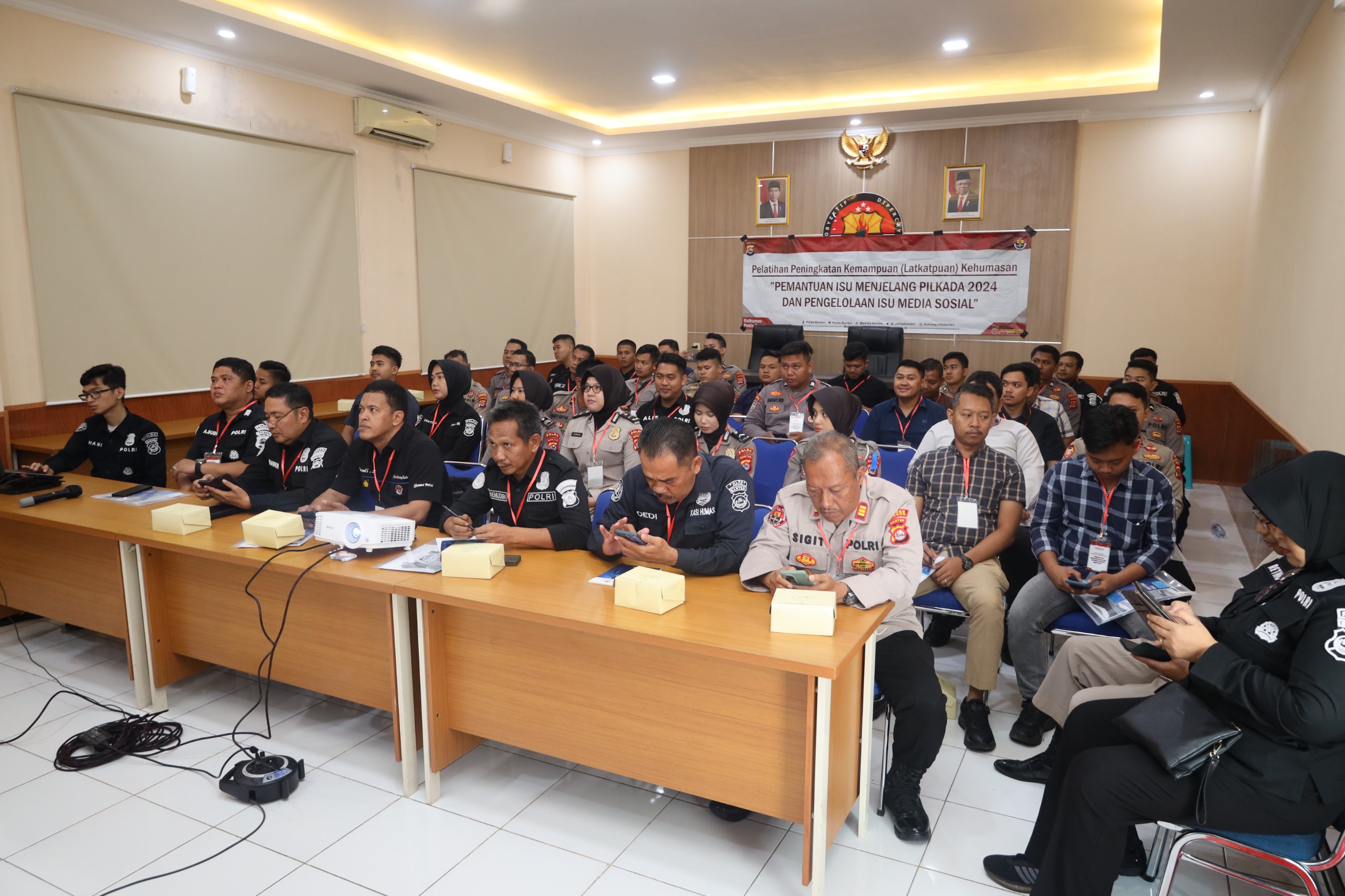 AKBP Meryadi menjelaskan kegiatan tersebut. “Hari ini Bidhumas Polda Banten menggelar kegiatan pelatihan kemampuan humas dengan tema dalam pelatihan kemampuan humas ini adalah pemantauan Isu Menjelang Pilkada 2024 dan Pengelolaan Isu Media Sosial,” katanya.