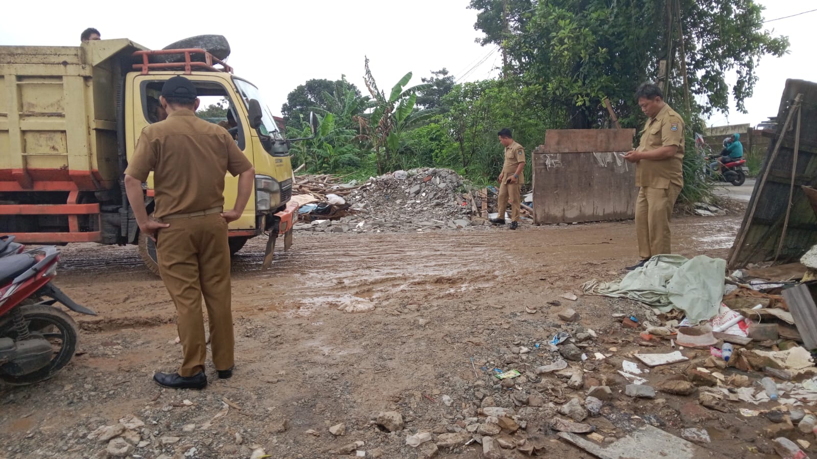 Dalam kegiatan tersebut, petugas yang dipimpin oleh Kepala Seksi Ketentraman dan Ketertiban (Kasi Trantib) bersama sejumlah anggota, di antaranya Leo, melakukan penertiban terhadap kendaraan pengangkut sampah yang hendak membuang muatannya di lokasi tersebut.