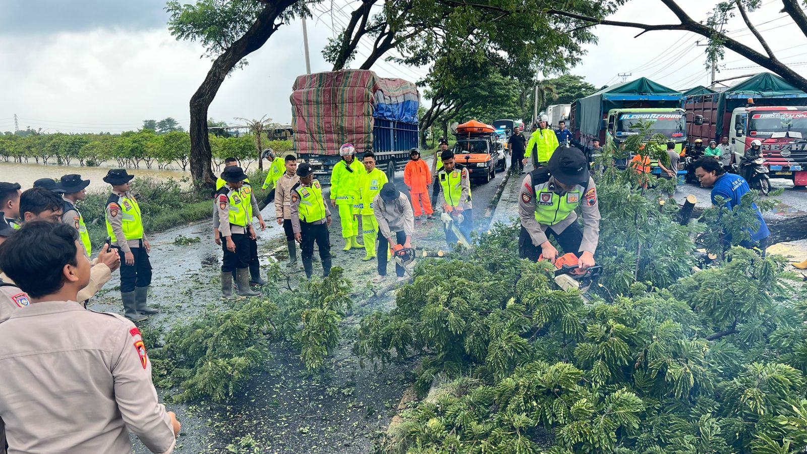 Petugas dari Polsek Pati Kota bersama Satlantas dan Sat Samapta Polresta Pati, dibantu BPBD Kabupaten Pati serta relawan, segera melakukan evakuasi. “Fokus utama kami adalah keselamatan pengguna jalan, sehingga pengaturan lalu lintas langsung dilakukan agar tidak terjadi kemacetan maupun kecelakaan,” kata Iptu Heru.