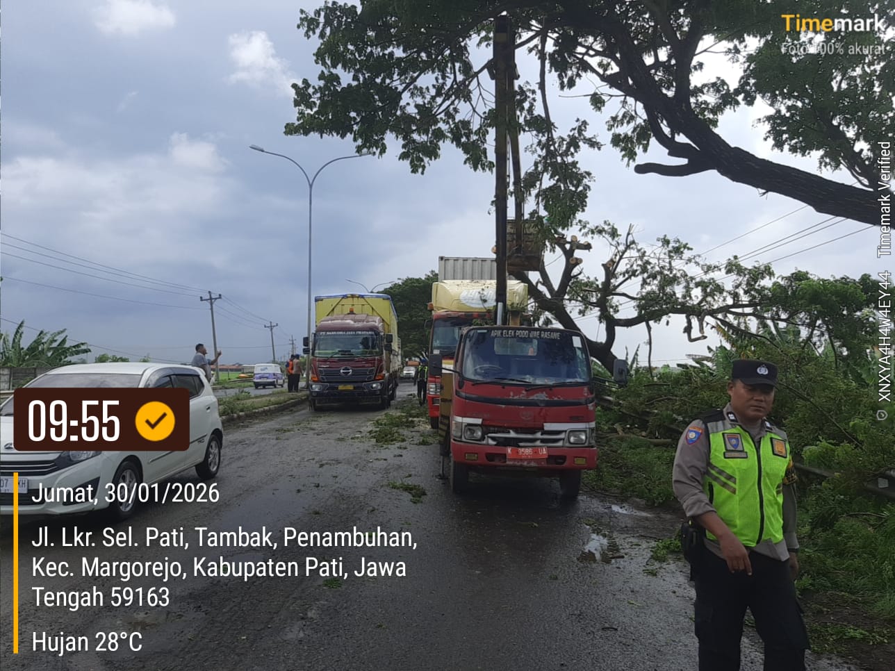 Kapolresta Pati melalui Kapolsek Margorejo AKP Dwi Kristiawan mengatakan, setelah menerima laporan pada pukul 08.30 WIB, pihaknya langsung menerjunkan personel ke lokasi untuk melakukan pengecekan sekaligus pengamanan arus lalu lintas. “Begitu ada laporan, piket siaga SPKT II langsung ke TKP. Prioritas kami adalah keselamatan pengguna jalan dan mencegah terjadinya kemacetan panjang,” ujarnya.