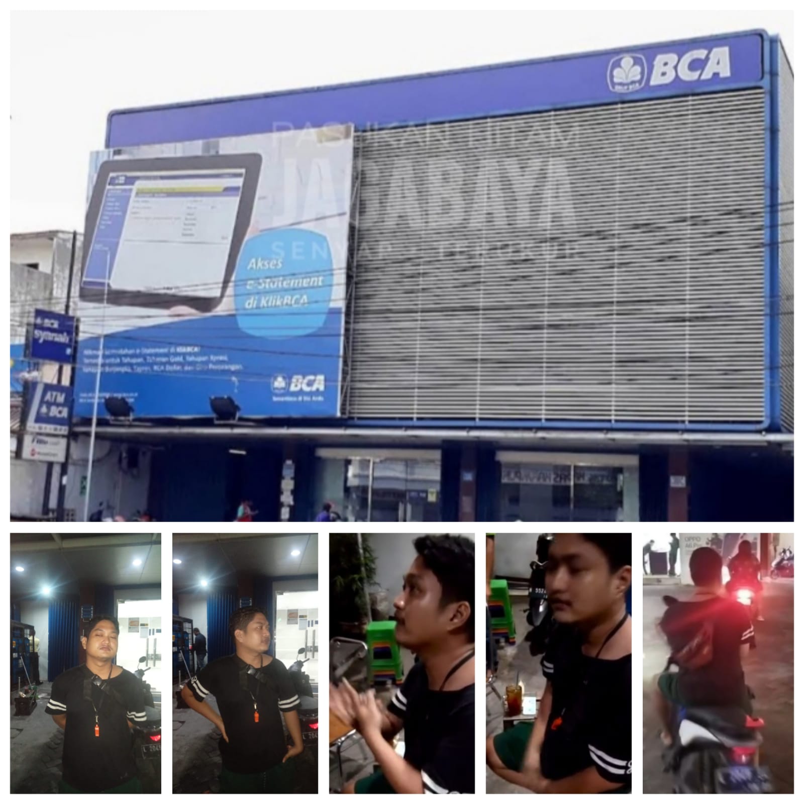 Peristiwa terjadi di area parkir depan KCP BCA Kapas Krampung, Jalan Kapas Krampung No. 126-A Surabaya.