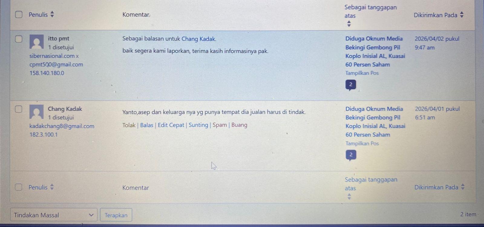 Parung Panjang, CeklisDua.net – Warganet mengomentari terkait pemberitaan yang di terbitkan oleh media Sibernasional.com mengenai Gembong Pil Koplo yang berinisial AL,kuasai 60% saham di bisnis haram tersebut. Kamis (02/04/2026).